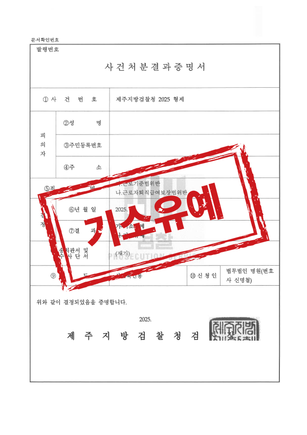 본 사건은 피해 근로자가 의뢰인의 연락을 회피하고 있어 원만한 합의 진행이 사실상 불가능한 상황이었습니다. 이에 변호인은 검찰 단계에서 형사조정절차를 적극 활용하여 피해 근로자와의 공식적인 연락 창구를 마련하였고, 밀린 급여를 분할 변제하는 조건으로 처벌불원서를 확보하는 것이 핵심 쟁점이었습니다. 이에 의뢰인의 현실적인 경제 상황을 충분히 반영하여 일시 변제가 아닌 분할 변제를 전제로 한 합의 구조를 설계하였고, 이를 바탕으로 피해자를 설득하여 최종적으로 처벌불원 의사를 확보하였습니다.